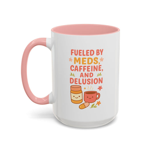 Fueled by Meds Accent Ceramic Mug| Funny Spoonie Chronic Illness Humor for Her| Gift for Coffee Lovers, Cute Mug for Home, Unique Tea Mug
