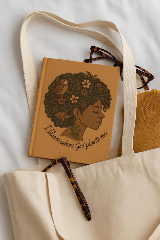 Afrocentric Christian Journal | I Bloom Where God Plants Me Notebook | Black Woman Affirmation Gift | Faith Writing Journal